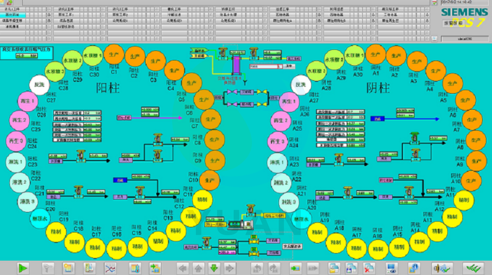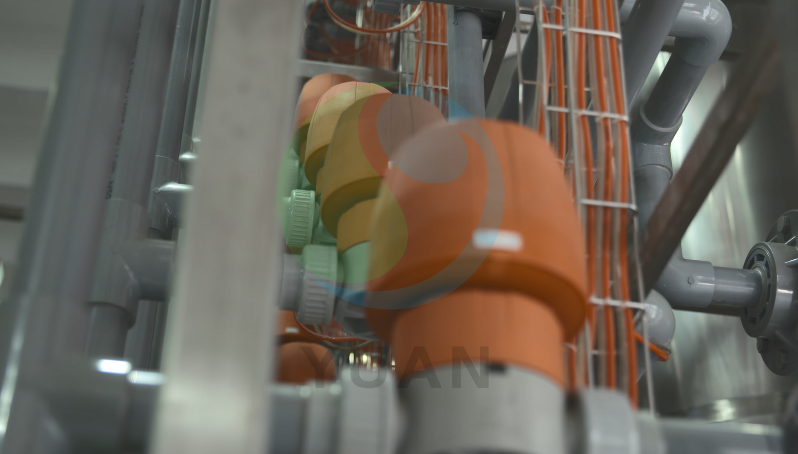 Muitas válvulas e alguns oleodutos estão ligados para se tornarem parte do sistema de troca iônica, que é chamado de matriz de válvulas. Podemos alternar uma certa válvula para realizar as funções correspondentes.